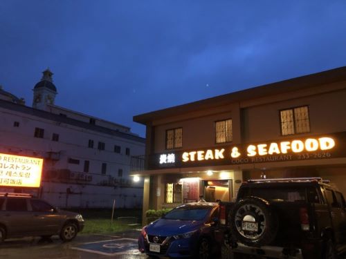 日本人オーナーの佐合さん率いる、ガラパン繁華街にあるステ-キとシ-フ-ドのレストランです、US最高級ブランドのアンガスビーフを使用、サイパンで一番ボリュ-ム満点の料理!は味も抜群でチ-ププライスです、勿論ランチタイムも充実し日替わりランチも格安マサダイブより徒歩1分弱のレストラン